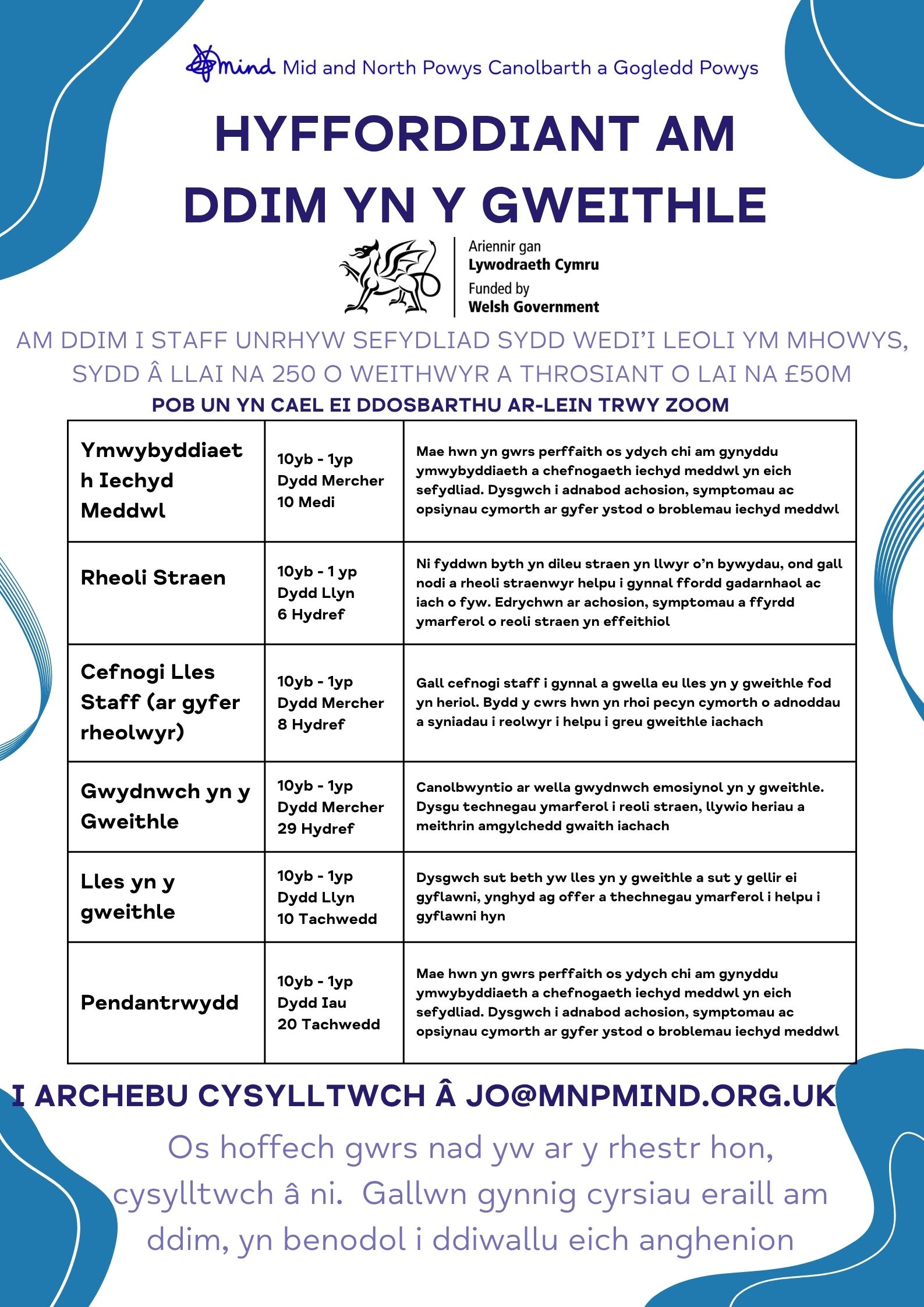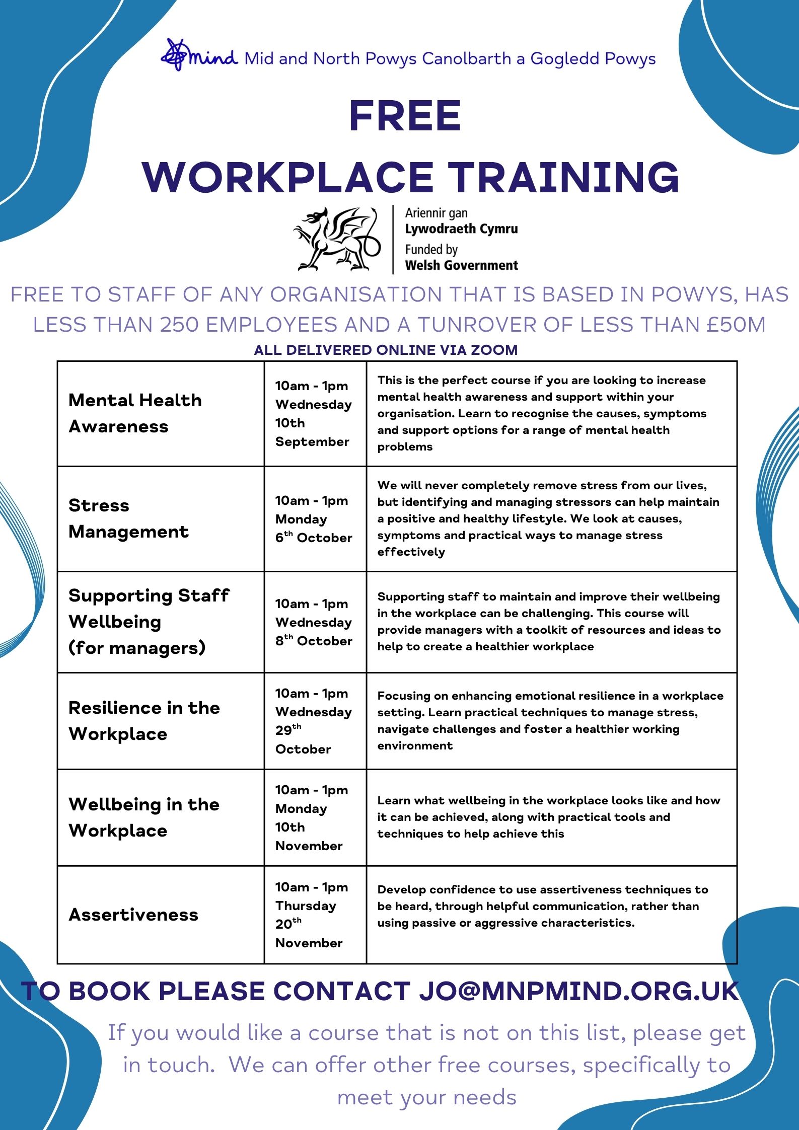 Free to staff of any organisation that is based in Powys, has less than 250 employees and a turnover of less than 50M.